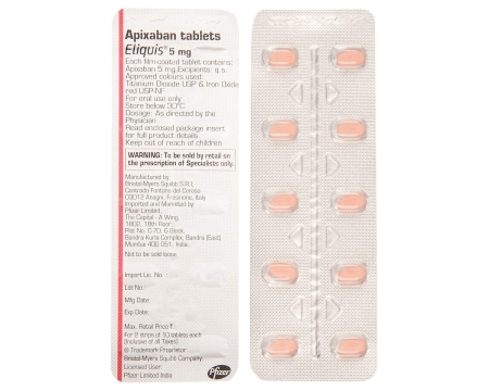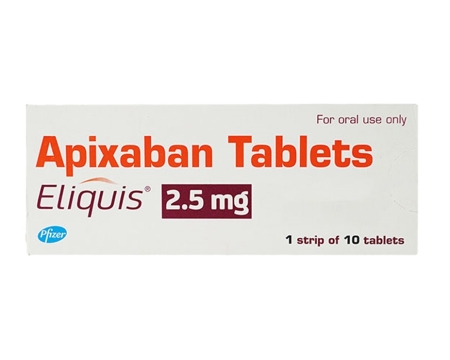 - Za zdravljenje globoke venske tromboze se predpiše odmerek 10 mg dvakrat na dan en teden. Nato se odmerek prilagodi na 5 mg dvakrat na dan za 3 mesece. Odmerek 2,5 mg dvakrat na dan se uporablja za preprečevanje krvnih strdkov;